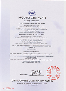 CIXI RIYI CAPACITOR FACTORY is een professionele onderneming gespecialiseerd in de productie van AC-motorcondensator, compensatiecondensator voor verlichtingsarmaturen, filters en andere producten. Het bedrijf is gevestigd op de zuidelijke oever van de Hangzhou Bay Bridge, waar het verkeer erg handig is.
